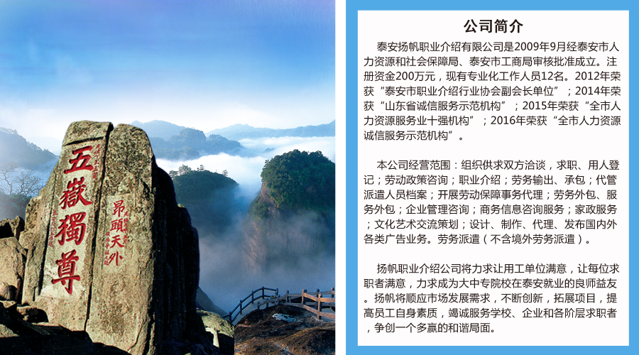 【招聘公告】泰安揚帆職業介紹有限公司某國有企業招聘簡章 [2025-09-11]